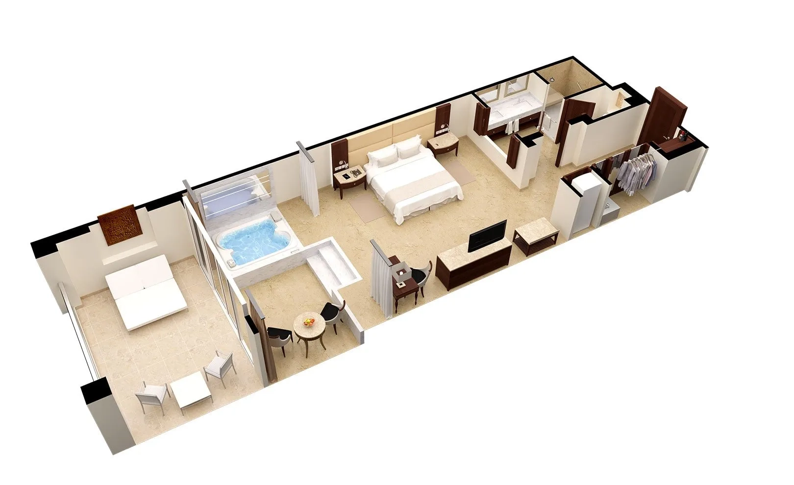 Relájate con una exuberante vista y comodidades que incluyen una suave cama para descansar como nunca, una relajante tina de hidromasaje así como un minibar renovado diariamente junto con un dispensador de licores Premium. Además complementa tu relajación con alguna de nuestras opciones de aromaterapia y relájate con tu almohada favorita, seleccionada de un menú exclusivo.